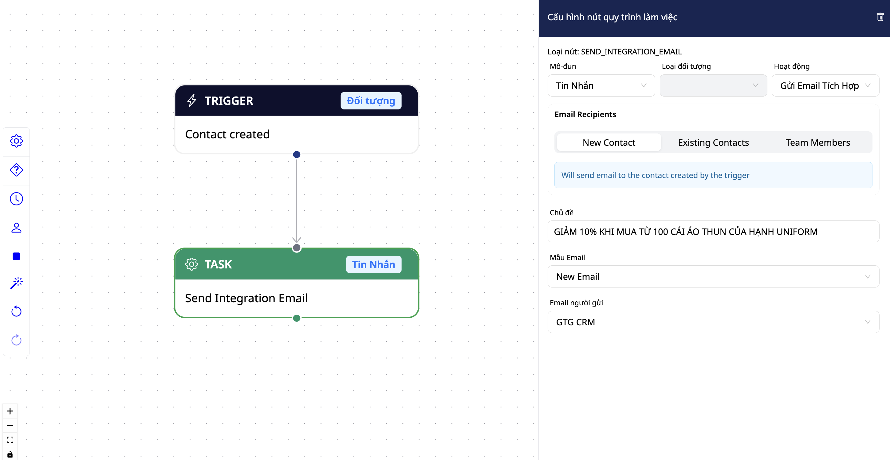 Ms. Hanh creates an email from GTG CRM's professional Template treasure
