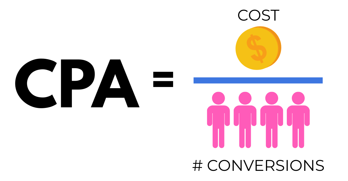 CPA shows how much each action (purchase, form filling, registration...) costs.