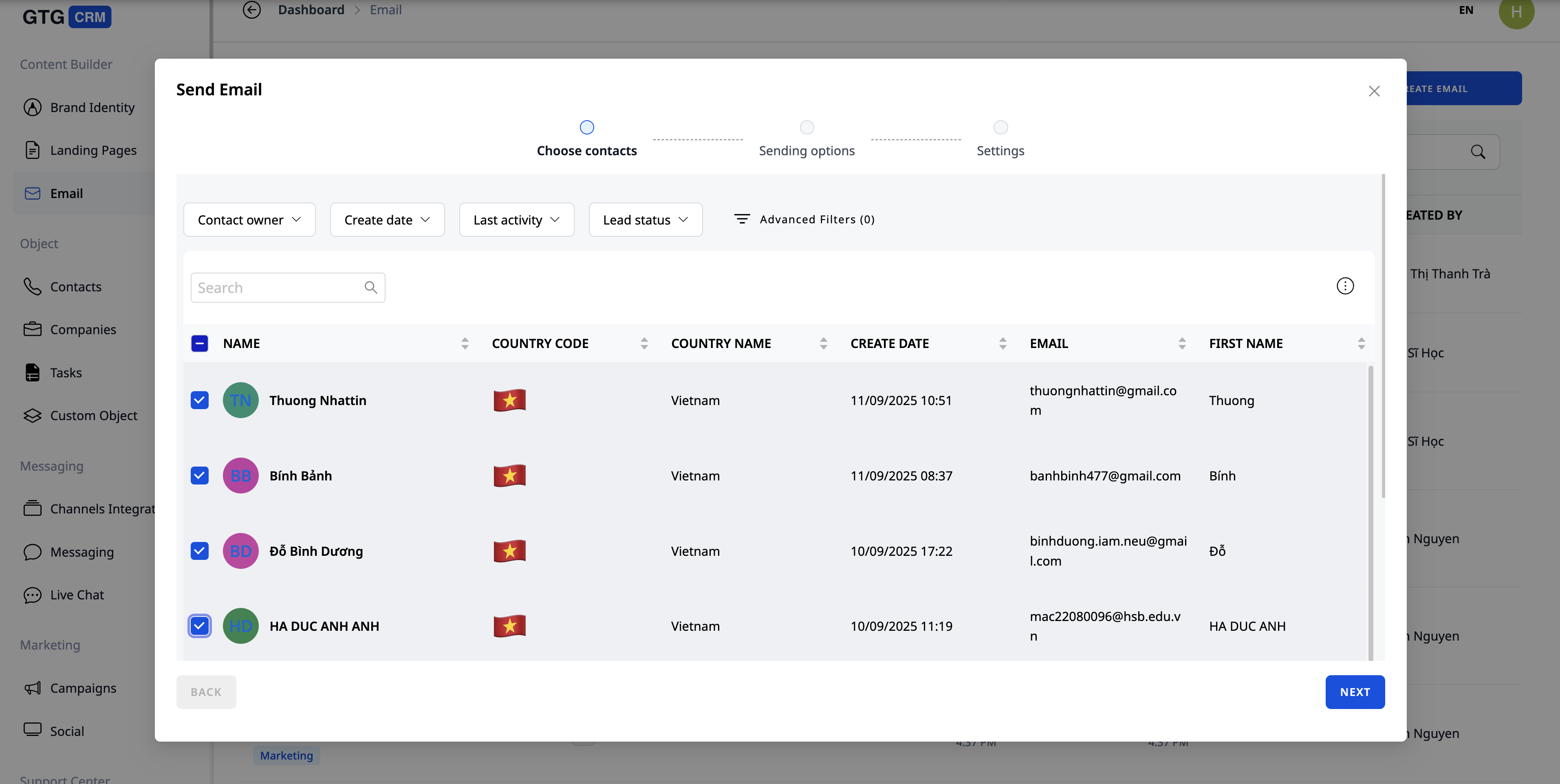 Bulk sending: You send emails to a specific group of customers, for example, a group of customers who have just left their information, a group of customers whose birthdays are in the month... Bulk sending only requires a few steps to select the contact file and click send or