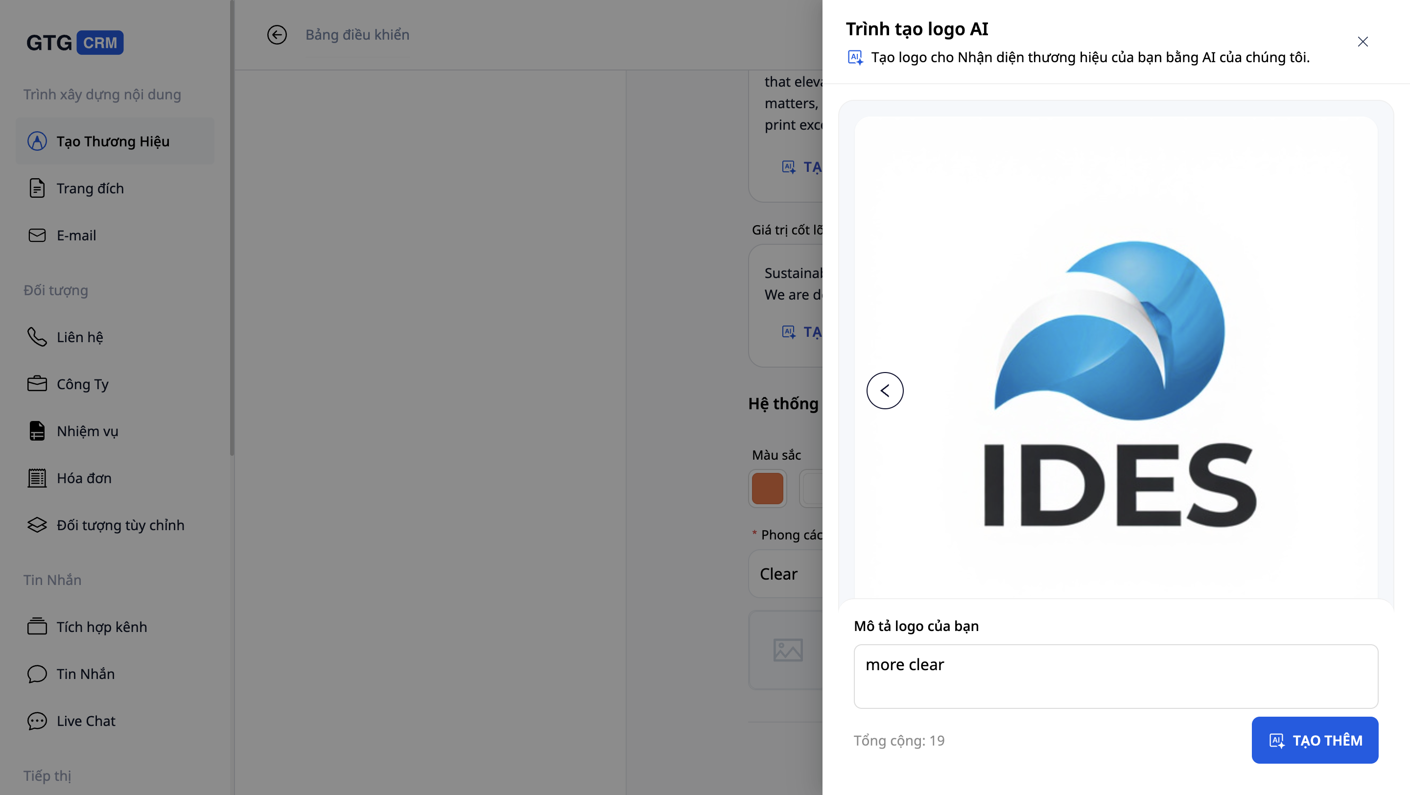 AI automatically creates logos: If you are worried about creating a Landing Page but do not have a logo, take advantage of GTG CRM's Brand Identity feature. In just a few minutes, you can create a professional logo.