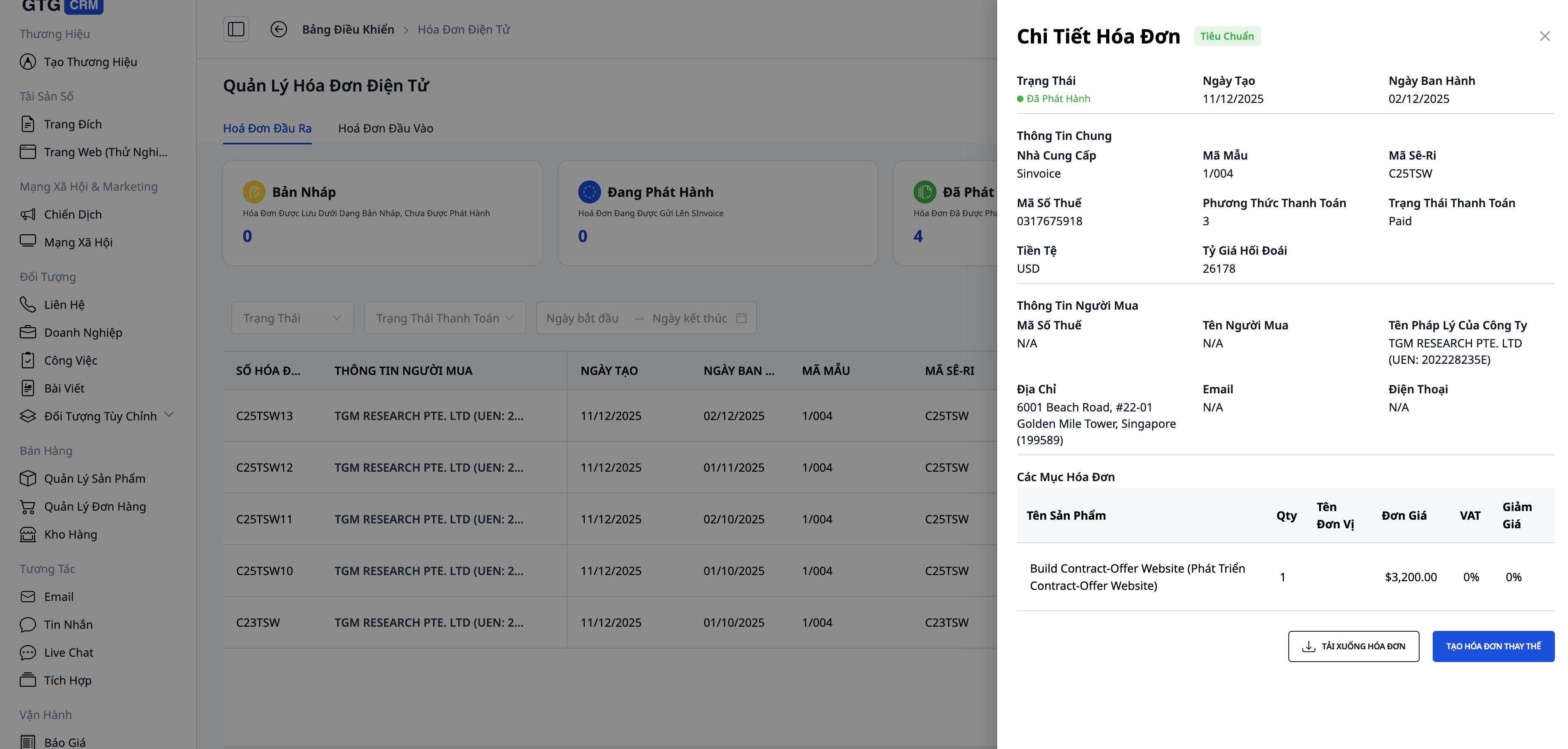Decree 320/2025/ND-CP sets higher requirements for transparency in revenue and tax obligations, especially for small businesses and household businesses. Proactively monitoring revenue, issuing complete invoices, and centrally storing data not only helps comply with regulations but also contributes to rationalizing lump-sum tax rates and reducing the risk of inaccurate tax assessments. With sales, revenue, and invoice management tools integrated into GTG CRM, businesses can effectively control business data from the outset, support more transparent work with tax authorities, and create a sustainable operational foundation in line with the spirit of Decree 320/2025/ND-CP. Key features include: