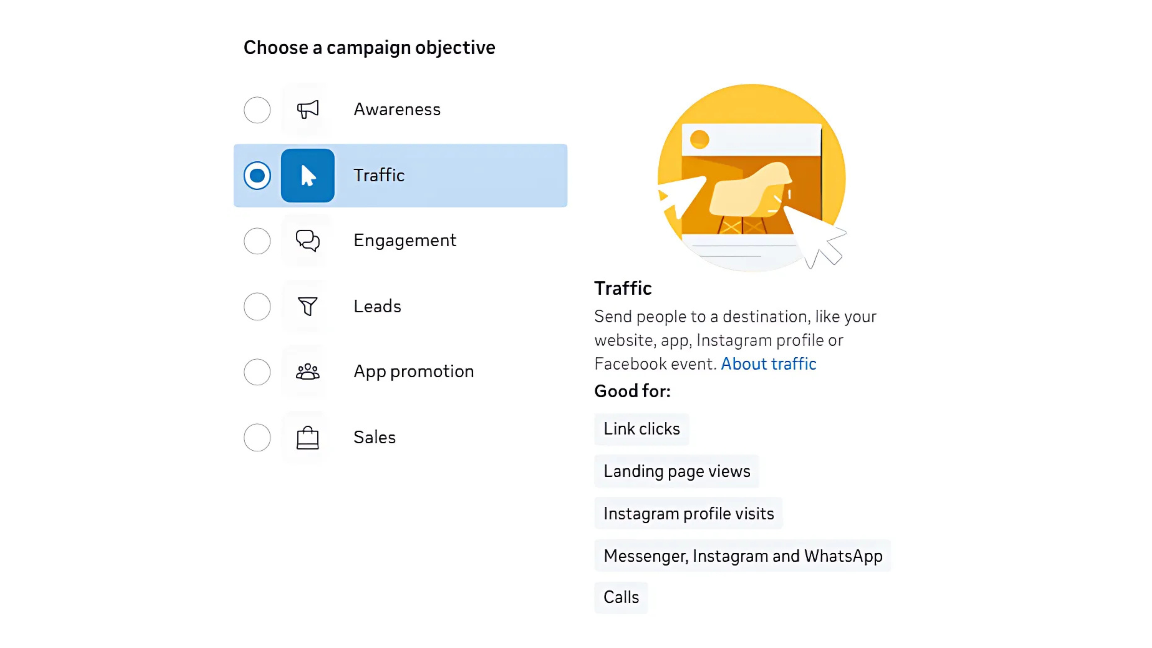 Unlike recognition, traffic campaigns aim to lead customers to your website, landing page or a platform that you control. This is a way for you to both introduce your product and collect behavioral data.