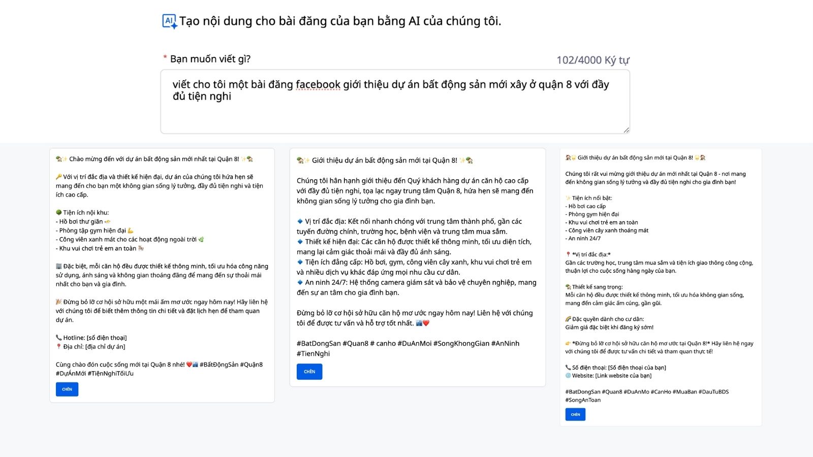 When launching a new project, real estate businesses often need to create campaigns quickly while ensuring the content is accurate, the images are relevant, and the target audience is correct. The AI tools in GTG CRM simplify this entire process by: