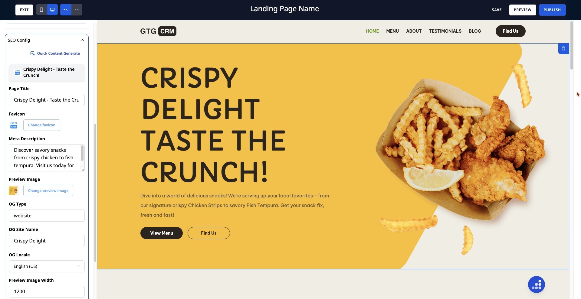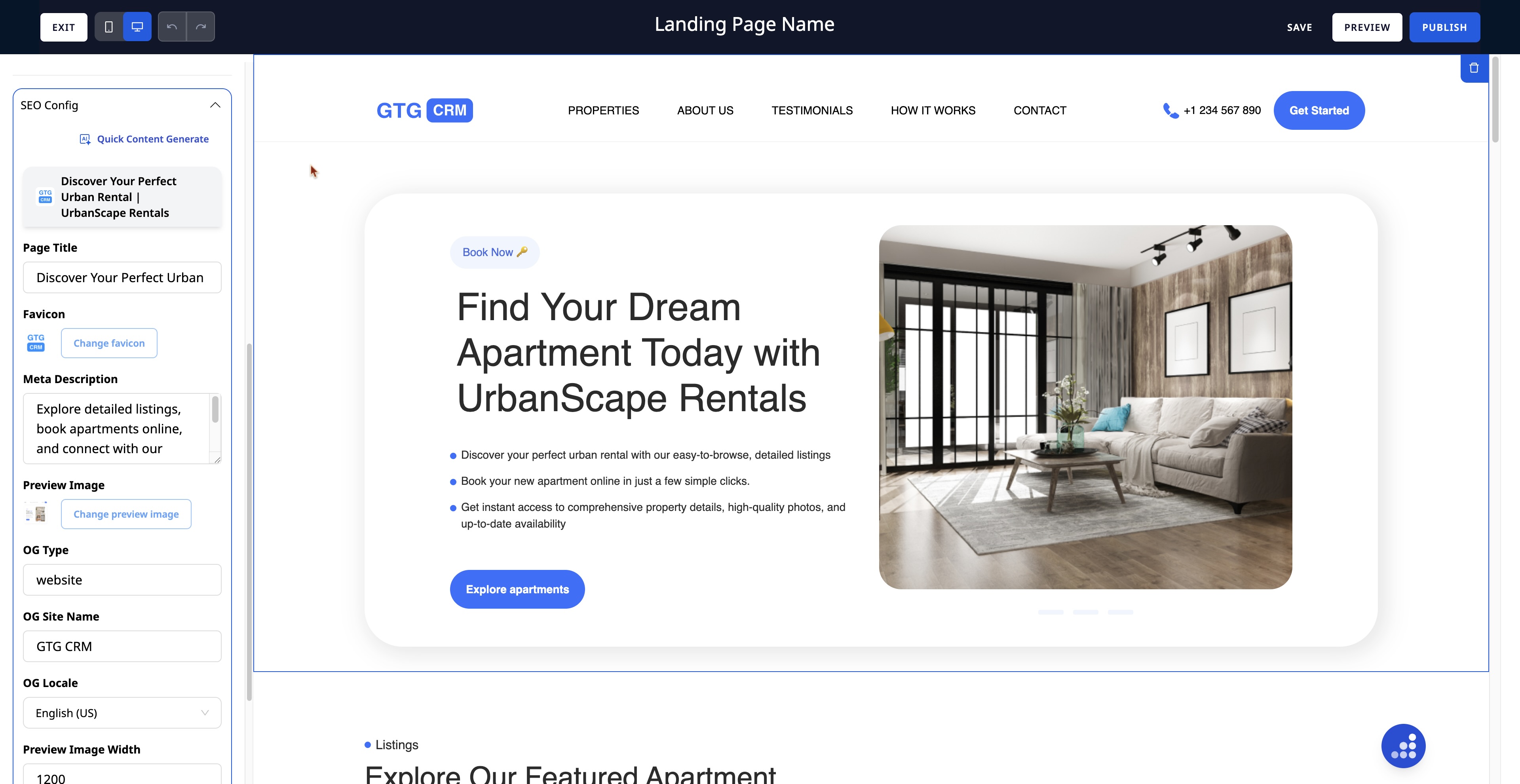 GTG CRM offers an all-in-one landing page builder, to help you create a professional landing page in minutes: