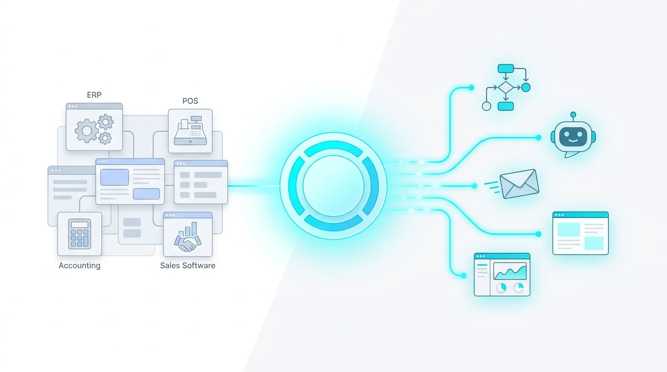 In the era of digital transformation, businesses often face a difficult paradox. On the one hand, they are well aware of the value of AI technology in optimizing operations, reducing personnel costs, and enhancing customer experience. On the other hand, their existing sales management, accounting, ERP, or POS software systems, which they have invested in and implemented for many years, are still running smoothly and contain all their critical business data.
