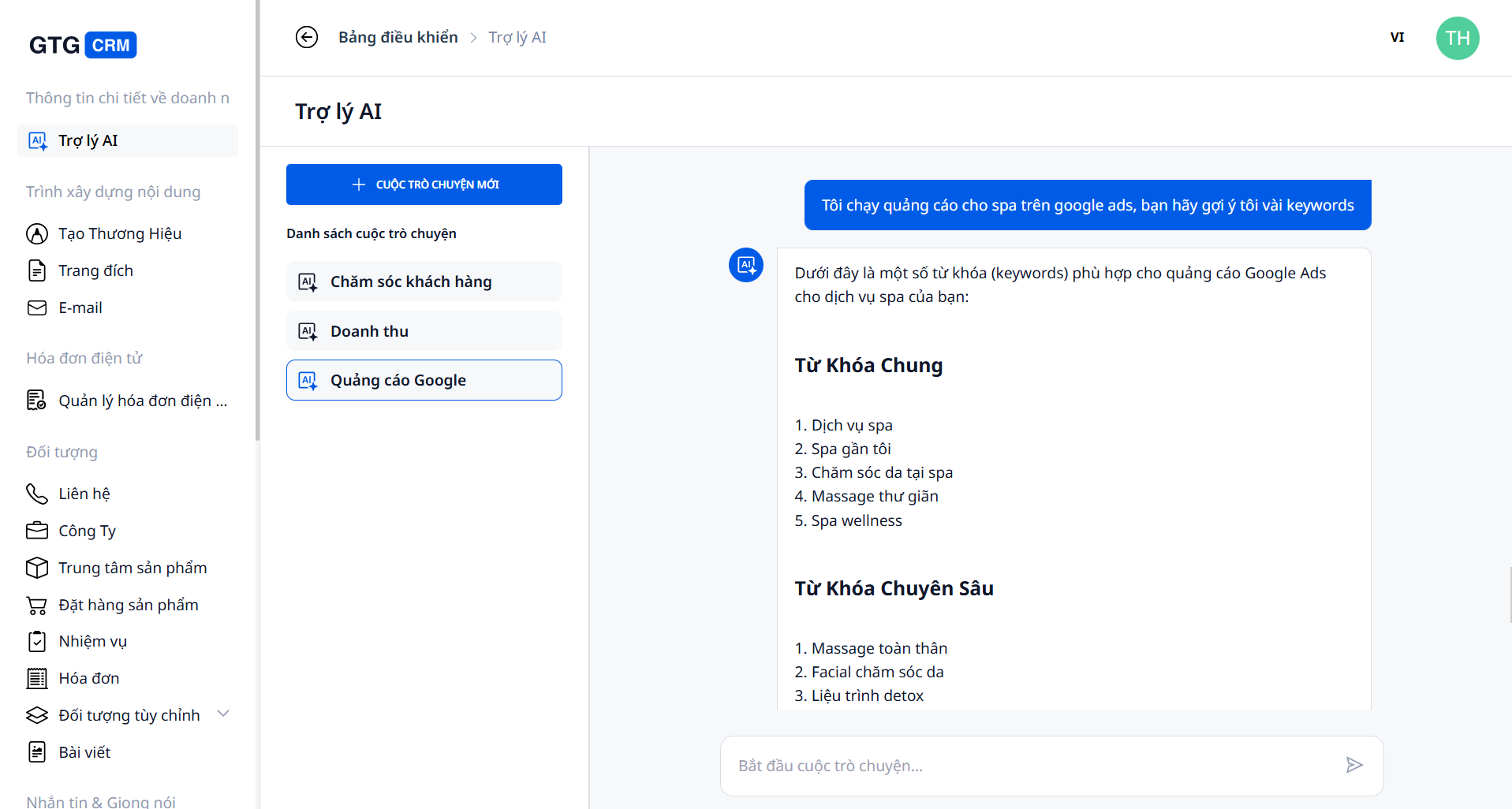 La IA siempre está presente para respaldar la respuesta profesional a los mensajes de los clientes de GTG. CRM