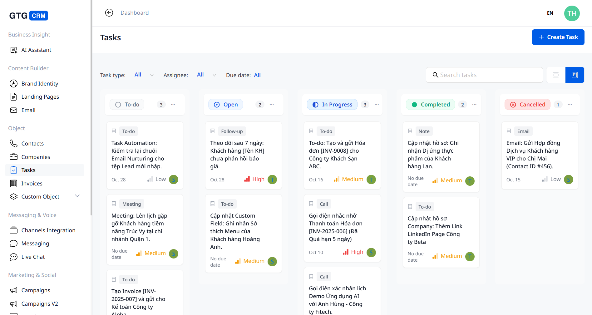 如果 Zoho CRM 能够帮助像 Brigade Plus 这样的大型企业实现卓越的数据管理效率,那么 GTG CRM 则是越南中小企业的理想之选——它们需要同等强大的功能,但 更注重快速部署、 易用性和合理的成本。