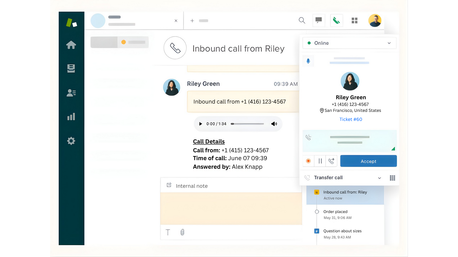 无需手动查找,无需切换标签页。客服人员只需聆听并处理。